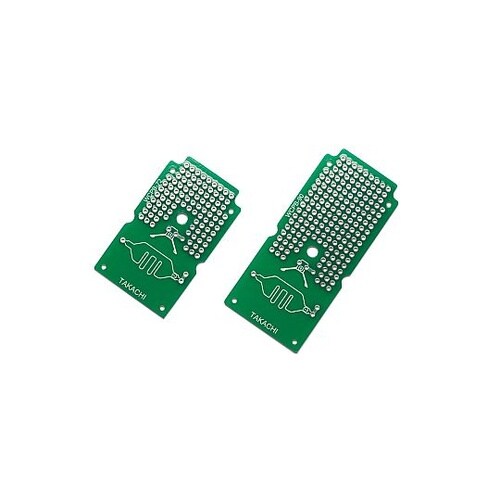 WCシリーズに実装できる専用の基板です。試作や小ロット製作の際にご利用下さい。材質はガラスエポキシ(FR−4)で両面スルーホール、2.54mmピッチの基板です。 |