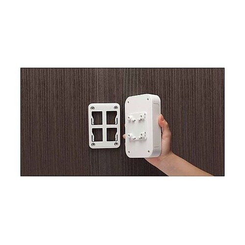 壁面に引掛け機器の設置が出来る樹脂製の壁掛けブラケットです。ケース板厚t0.8ーt3.5まで対応しますので板金ケースから樹脂ボックスまで幅広いケースに使用出来ます。取付の際はケースに穴加工が必要です。 |