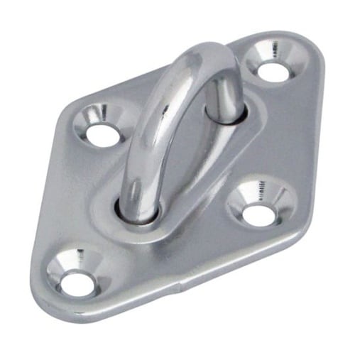 形状が菱形です。4ヵ所を止めるタイプです。壁面・床面・柱などに設置し、チェーン・ワイヤ・ロープの端末金具として。 |