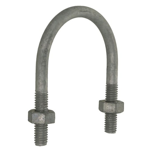 材質は鉄で、溶融亜鉛めっき。配管を構造物に固定するときに使用。組み合わせ部品はどぶめっき品を使用してください。