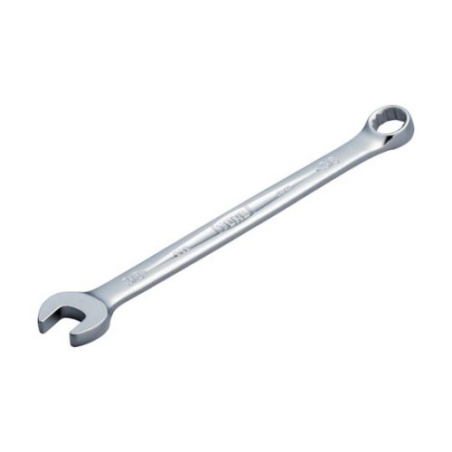 スパナのスピードとめがねレンチの強さを兼ね備えています。仮締めをスパナ側で、本締めはめがね側で行える1丁2役の機能工具です。めがね部の柄の曲がり角度15°です。グッドデザイン賞受賞品です。 |