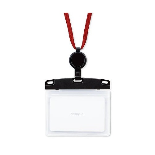 吊り下げ名札 リール式 ソフトヨコ名刺 2枚収納 赤 NL−27P−RD NL−27P−RD 1枚