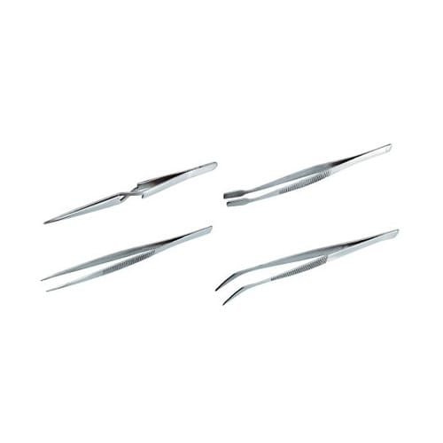 精密作業に適した、便利に使える4本をセットしました。精密機器、手芸、アクセサリー等の作成に使える使用頻度の高い4本セット。酸洗液、接着剤に強いステンレスを使用。 |