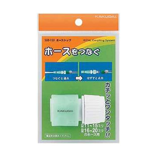 カチッとワンタッチ。流路内径9ミリ、内径11ー15×外径16ー20ミリホース用、リサールカップリングシステムは屋外散水以外の用途に使用しないでください。漏水し家財などに損害を与える恐れがあります。 |