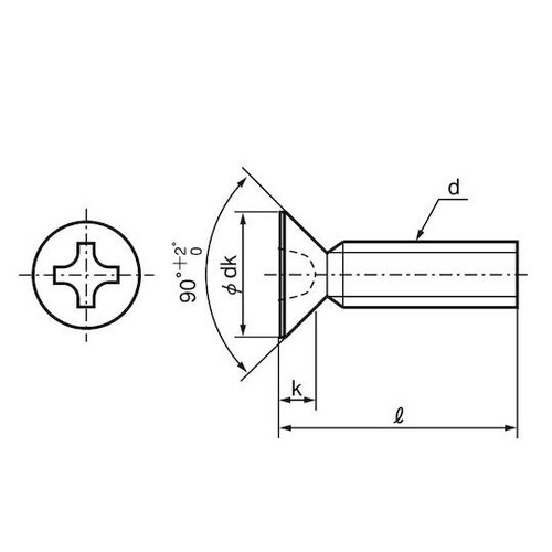 上面が平らで座面が円錐形の頭の形状です。皿小ねじは頭部も含めた全長が長さとなります。(一般的には首下部分の長さ。 |
