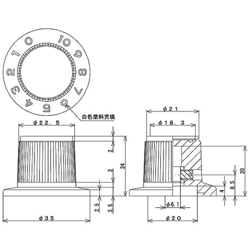 つまみ Φ35 黒 ダイヤル印字あり シ
