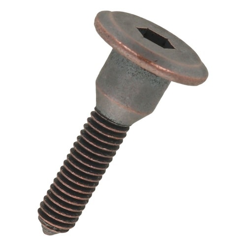 材質は鉄でブロンズめっき。さら状の頭部により、表面を保護し安定した角度が得られます。M6のオニメナットA,Eタイプと組み合わせ、特に高級木工家具の組み立てに使用します。