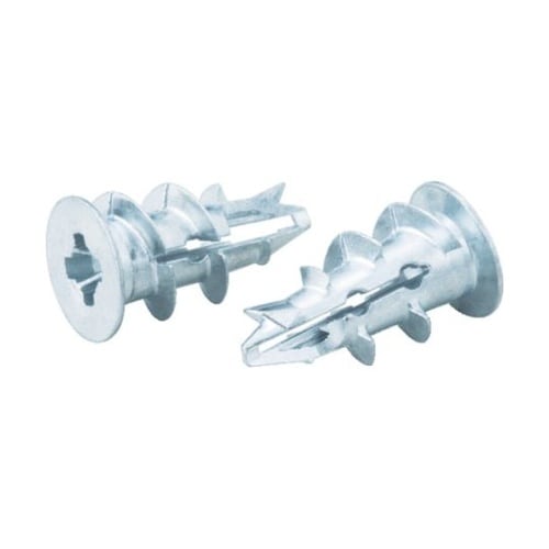 下穴なしでも位置決めが簡単に行なえます。全ての石こうボードに対応します。2枚張り施工でも下穴は不要です。先端が壁の中で2つに割れてしっかりと固定されます。GL工法に使用可能です。 |