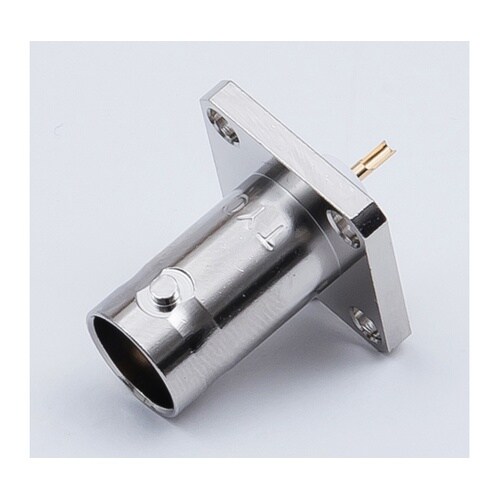 パネル取付タイプのBNC75Ω型レセプタクルです。本体は黄銅にニッケルメッキ。ターミナル形状はソルダータイプになります。 |