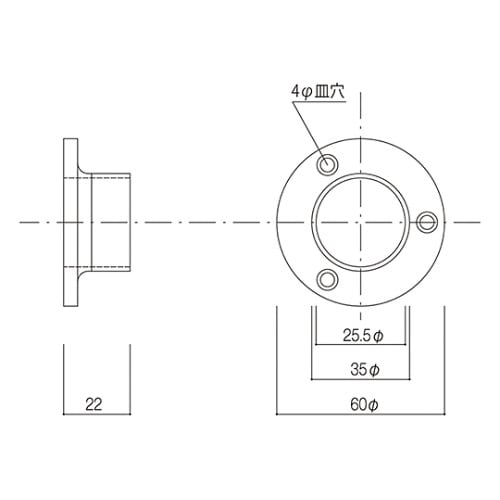 寸法:a22、b60径、c35径適用パイプ/32径 | 材質:亜鉛ダイカスト | 仕上:クロームメッキ | コード番号:03043855 | 単位:1…