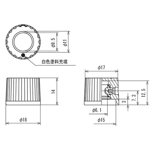 6mmシャフトのボリュームに取り付けるつまみです。 |