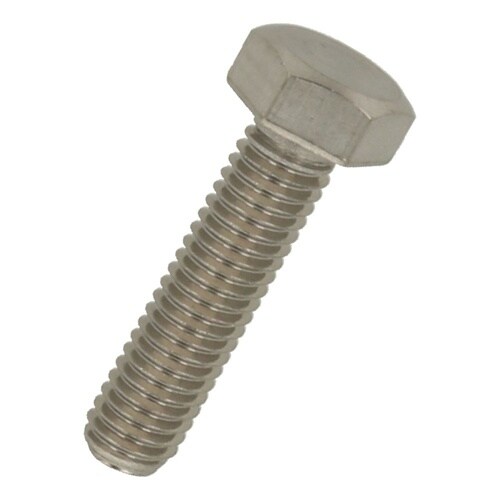 六角形状の頭部があり、胴の全体にねじが切ってあります。ステンレス鋼(SUS304系)なので耐食性、耐熱性に優れています。機械類の位置調整、締結用ねじです。