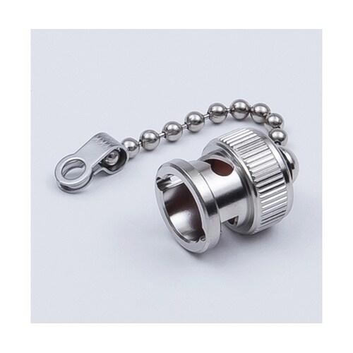 BNC型レセプタクル用のキャップです。埃などの侵入を防ぐことを目的としています。チェーン付きとなっており、落下・紛失を防ぎます。 |