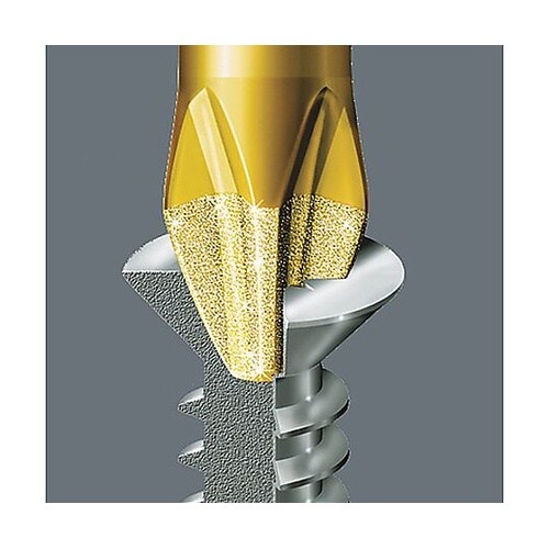 ダイヤモンドコーティングによりカムアウトを防止します力を加えたときの衝撃を、ほかの箇所より柔軟に設計されたバイトーションゾーンがねじれることによって吸収します。これにより耐久年数が延びます。 |