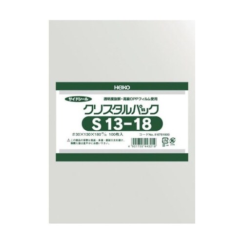 OPP袋 テープなし クリスタルパック S13−18 100枚入り 006751800 006751800 1袋