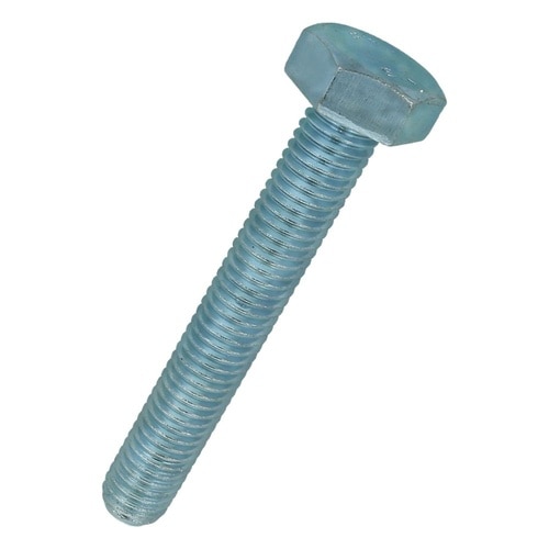 六角形状の頭部があり、胴の全体にねじが切ってあります。材質は鋼で耐食性向上のため、ユニクロめっき(薄青っぽい色合い)がしてあります。機械類の位置調整、締結用ねじです。生地に比べ耐食性があります。 |