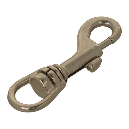 回転式。亜鉛ダイカスト製で、ニッケルめっき。 スナップ式になっているのでワンタッチで着脱ができる。チェーンの連結に使用。