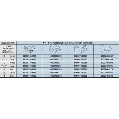 内容:カラーボタン | 適用機種:TP | その他仕様:φ10 | その他仕様:非照光タイプ | 色:グレー | 単位:1個