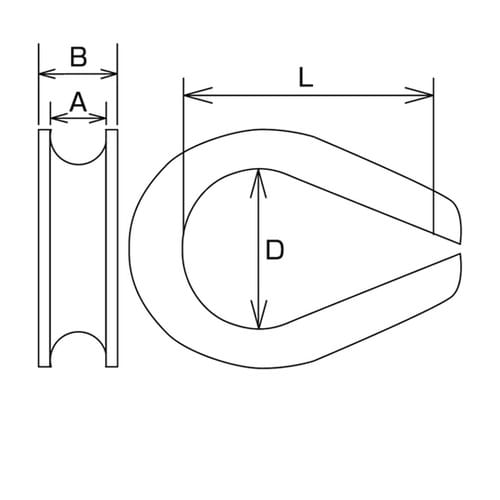 端末加工するワイヤーコースとして使います。ワイヤーロープの先端をアイ加工して使用する場合、ワイヤーの摩耗を防ぎます。 |
