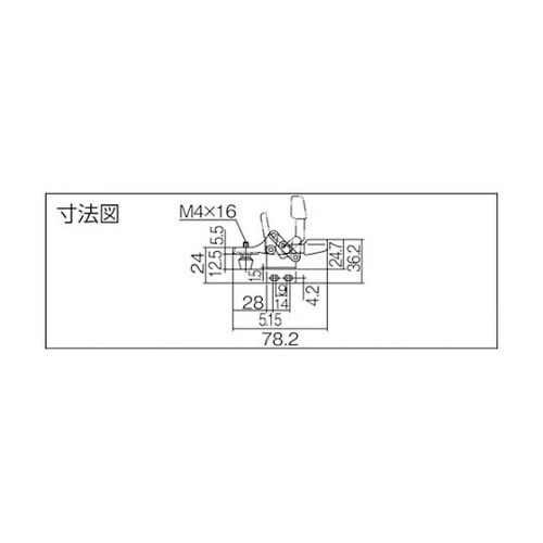 全長(mm):78.2 | 付属ボルト径:M4×16 | クランプアーム移動角度(°):95 | ハンドル操作角度(°):110 | 締付力(kN):…