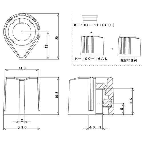 サトーパーツ 樹脂製ツマミ 黒 K−100−16AS−B K−100−16AS−B 1個 A06P-1051