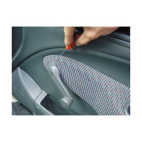 最適な軸の曲げ角度でピンを取り外しやすい設計です。自動車ドアのレギュレーターハンドル内のピンを取る専用工具です。 |