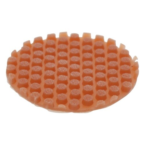 材質は天然ゴム(NR)一般的なゴム。弾性があり、摩擦力の高い凸凹タイプ。粘着シート付き。すべり止め。