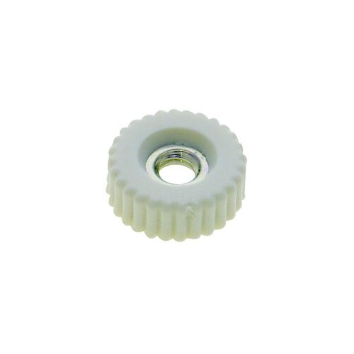 ねじ部の材質は鋼で三価クロメートめっき(薄青っぽい色)がしてあります。樹脂部はABS樹脂。手回しで締めつけが可能なナットです。誰にでもつまみやすいサイズと形が特徴です。 |