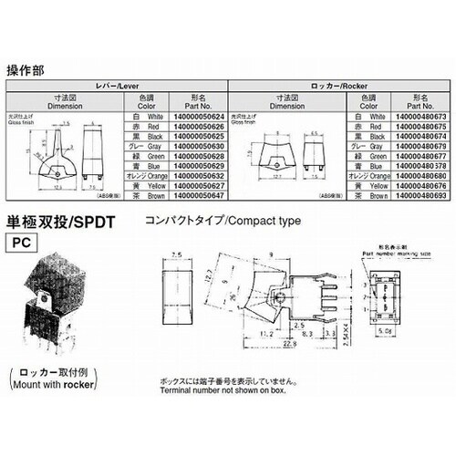 スタンダードレバー・ロッカースイッチ 単極双投 ON−ON PC端子+付属操作部 ALE1D−2M4−10−Z ALE1D−2M4−10−Z 1個