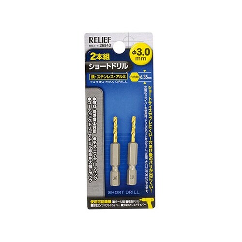 イチネンミツトモ 2本組 六角軸ショートドリル 3.0mm 26843 26843 1セット A06P-4347