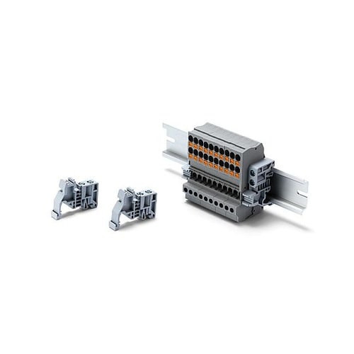 DINレール(35mm)用の端子台・モジュール・部品を固定する為の樹脂製ストッパーです。金属製ストッパー TKRシリーズと比べて大幅に低価格です。 |