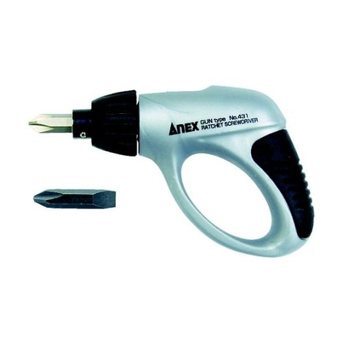 ネジピタビット1本で3種類のネジを回せます。力の入るガンタイプハンドルです。片手でラクラクネジを回せるラチェット機構を採用しています。ネジの取り付け、取り外しに。 |