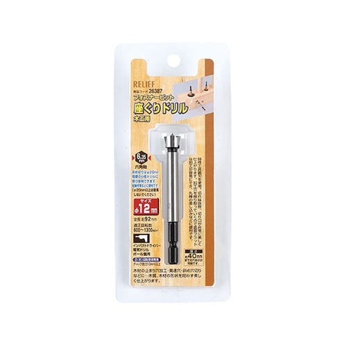 サイズ:12mm | 全長:約92mm | その他仕様:チャック能力10mm以上 | その他仕様:軸径六角軸(6.35mm) | 単位:1本