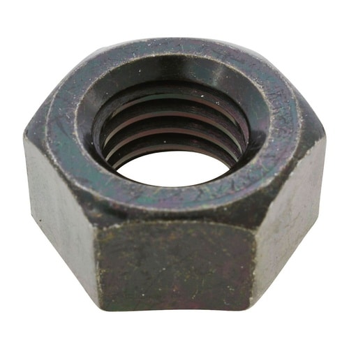 1種(片面取り)の一般的な六角ナットで、高さは呼び径の8割です。冷間圧造製品です。材質は鋼で耐食性向上のため黒色亜鉛クロメートめっき(黒っぽい色合い)がしてあります。