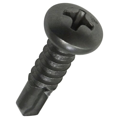 十字穴付のなべ頭タッピンねじで先端が切り刃になっています。この切り刃で下穴をあけ連動してタップ立て、締付けまでがねじ一本で出来ます。熱処理が必要ですのでSUS410を使用しています。