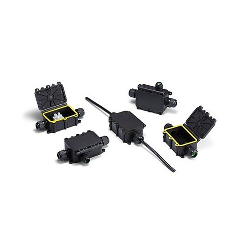 カバーがヒンジ開閉式でメンテナンスが容易な低価格形の防水ジャンクションボックスです。低価格でありながら、IP67相当の高い防水性です。2分岐、3分岐、4分岐の3タイプがあります。 |