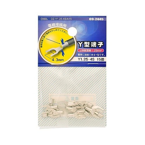 オーム電機 Y型端子 Y1.25−4S 15個入 DZ−Y1.25−4S/A15 DZ−Y1.25−4S/A15 1パック A06P-8088