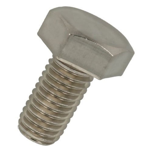 六角形状の頭部があり、胴の全体にねじが切ってあります。ステンレス鋼(SUS304系)なので耐食性、耐熱性に優れています。機械類の位置調整、締結用ねじです。