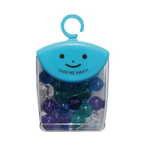 寸法:頭径・Φ10mm、針長・10mm | 材質:PS樹脂、鋼線 | 包装:フック付ケース(蓋・PP、容器・PS) | 色:クリアマリンカラー4色アソ…