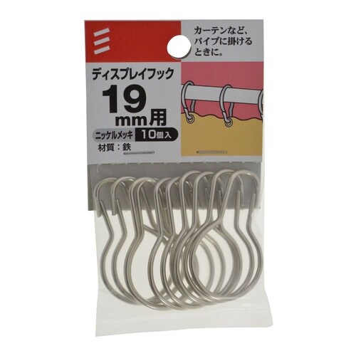 材質は鉄でニッケルめっき。取り付け簡単。シャワーカーテン等の吊下げ用に使います。 |
