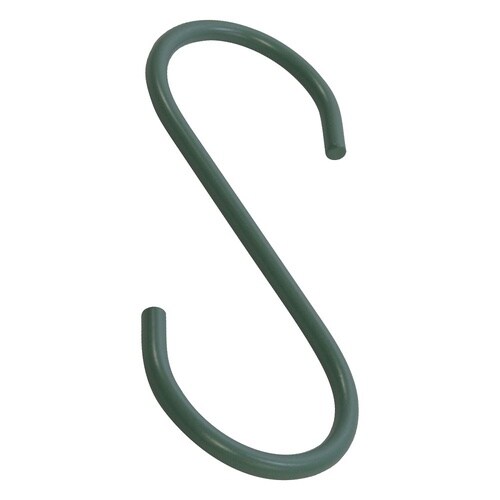 小さいS型フック。ゴールド色、ストーングリーン色(青銅色に黒っぽく斑点状に吹き付けた色合い)、ブロンズ金色、ブロンズ銅色、青銅色の5色。吊り下げ用フックなど。