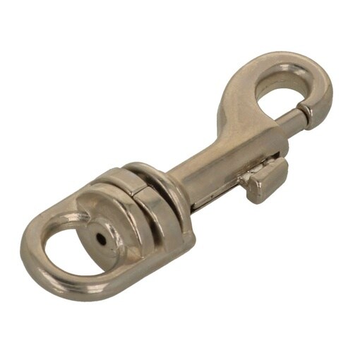 回転式。亜鉛ダイカスト製で、ニッケルめっき。 スナップ式になっているのでワンタッチで着脱ができる。チェーンの連結に使用。