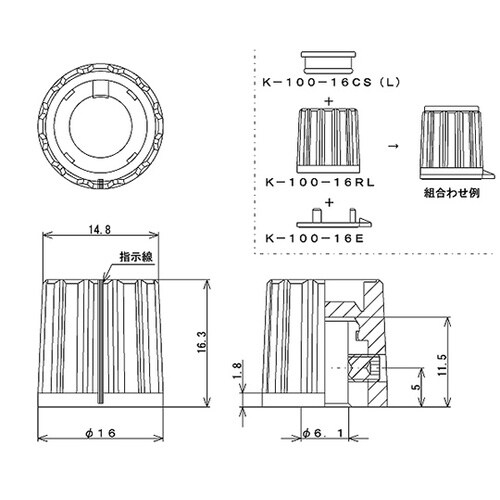 サトーパーツ つまみ Φ16 グレー 指示線あり シャフト径Φ6用 K−100−16RL−GY K−100−16RL−GY 1個 A06R-3796