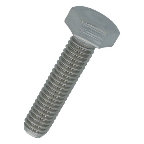六角形状の頭部があり、胴の全体にねじが切ってあります。ステンレス鋼(SUS304系)なので耐食性、耐熱性に優れています。機械類の位置調整、締結用ねじです。