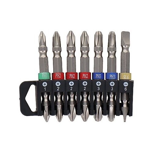 全長:65mm | 六角軸径:6.35mm | セット内容:65mm両頭ビットNo1(1本)、65mm両頭ビットNo2(3本)、65mm両頭ビットNo…