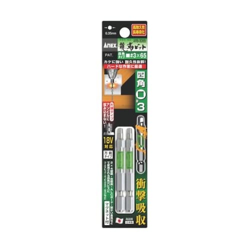 アネックスツール ドライバービット(トーションタイプ)龍靭ビット 片頭■#3×全長65mm 緑(2本入) ARS−3065 ARS−3065 1パック A06R-7333
