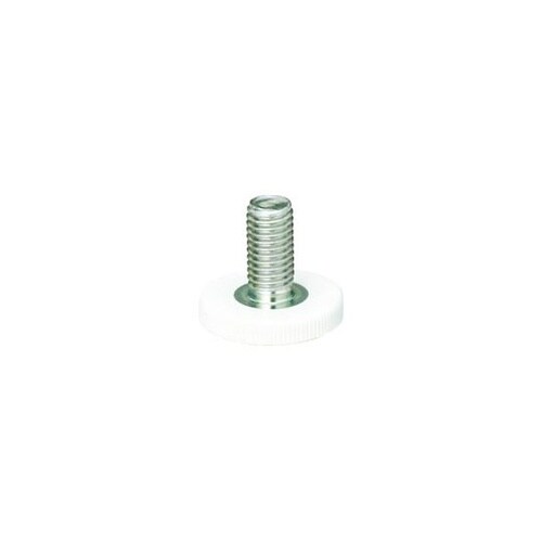 許容荷重(kgf):100 | ねじ寸法:M8 | ねじ長さ(mm):15 | 全高(mm):21 | 台座径(mm):20 | 色:ホワイト | 幅…