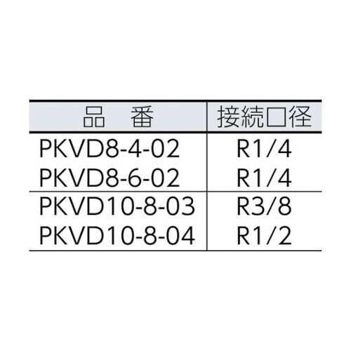 適合チューブ外径D1(mm):8 | 接続口径:R1・4 | 六角対辺(mm):14 | 最高使用圧力(MPa):1 | 使用流体:空気、水(条件あり…