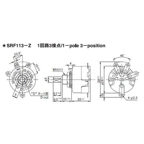 小形ロータリースイッチ 1回路3接点 はんだ端子 SRF113−Z SRF113−Z 1個