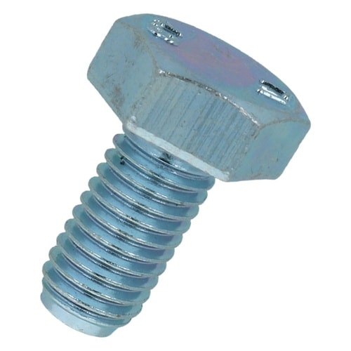 六角形状の頭部があり、胴の全体にねじが切ってあります。材質は鋼で耐食性向上のため、ユニクロめっき(薄青っぽい色合い)がしてあります。機械類の位置調整、締結用ねじです。生地に比べ耐食性があります。 |